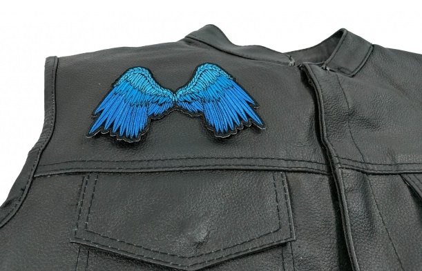 - This beautiful angel wings patch embroidered in different tones of blue and measures 5×3 inches.