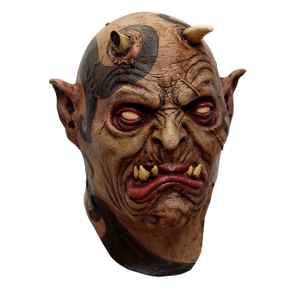 This heavily tattooed demon shows signs of human features that are clearly being over taken by the severe overbite, dead eyes, pointed ears and the small horns protruding from his forehead, one has since cracked off. This deluxe mask is made from high quality latex and is designed to cover the wearer’s face and head completely when worn