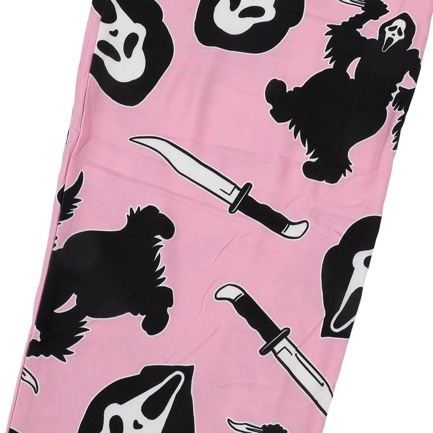 Lounge around with your favorite scary movies and these women’s sleep pants! The officially licensed Ghostface pajama pants feature a bold all-over print of Ghostface, his mask, and his iconic knife—eye-catching graphics that have been professionally printed for long-lasting print quality. The pants’ pink background color makes them a versatile addition to your wardrobe, while the elastic waistband with drawstring ensures a comfortable and adjustable fit each and every wear. It even has pockets! Crafted from a high-quality blend of 92% polyester and 8% Spandex brushed jersey, these sleep pants offer a soft and cozy feel against your skin. And when it’s time for a refresh, simply machine wash them for hassle-free care!