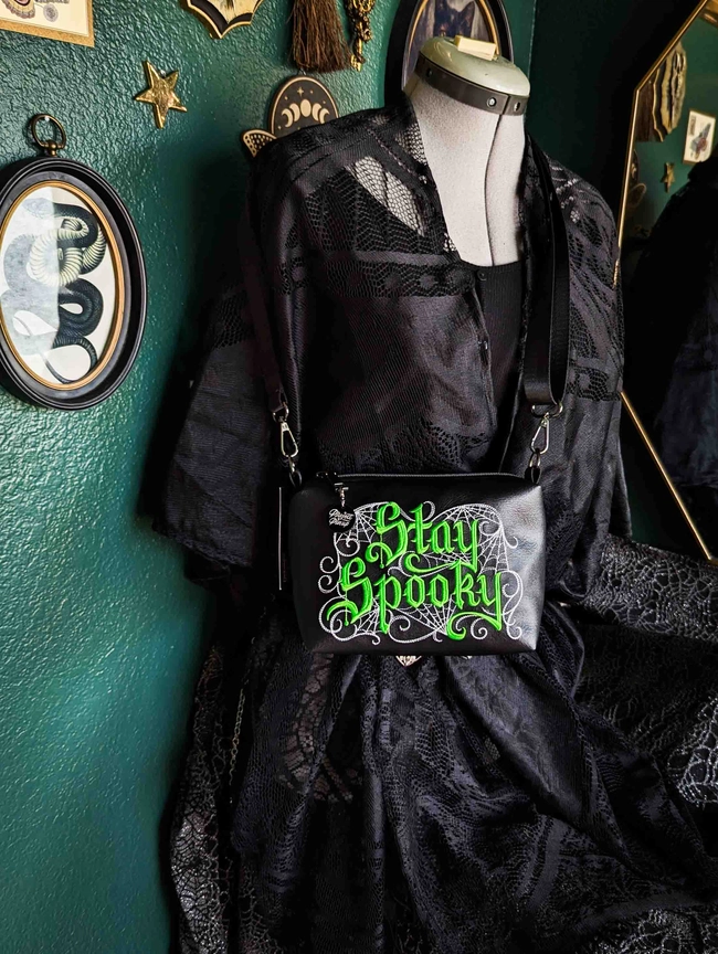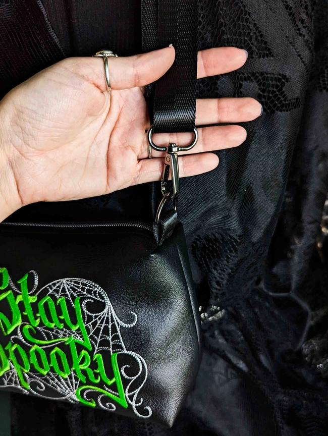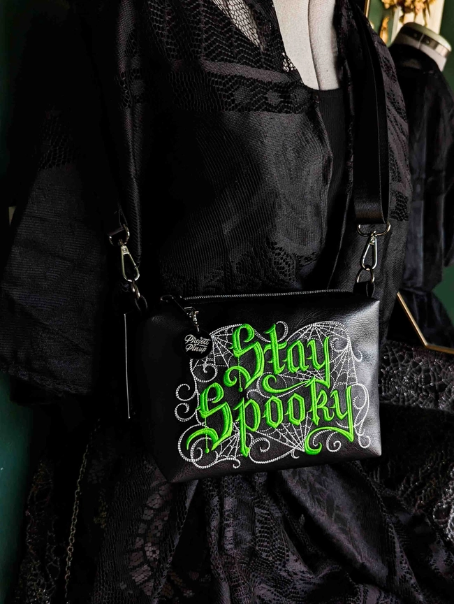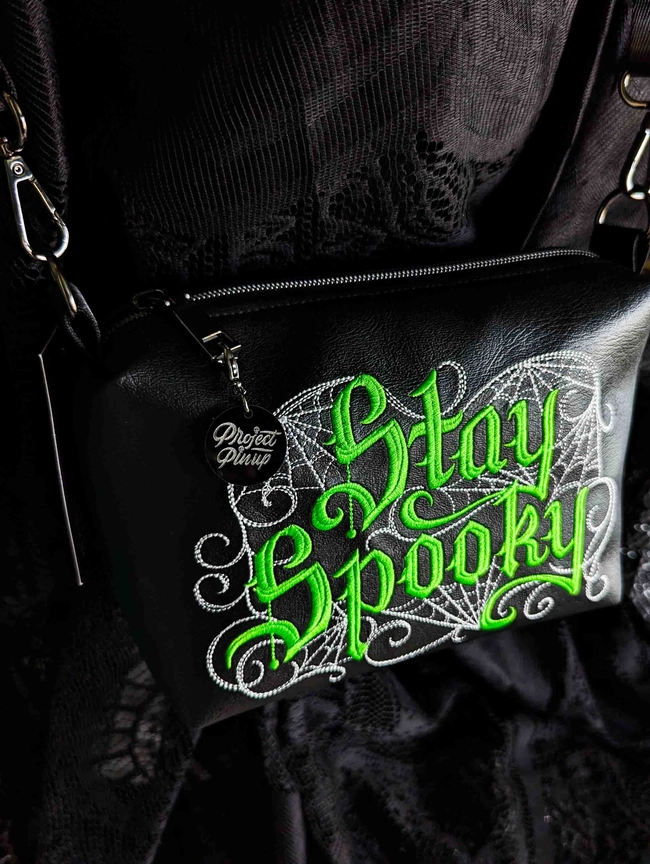 Stay Spooky Embroidered Small Crossbody Bag – Lime Green
