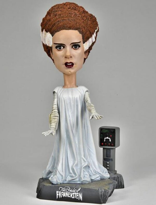 What a lovely bride! With her wedding coming up, do you think she’s got cold hands instead of cold feet? This nicely detailed resin Bride of Frankenstein Bobble Head stands about 6-inches tall and is part of the highly successful Universal Monsters series. As a special bonus, she and the Frankenstein Bobble Head connect together to form the perfect couple… a match made in heaven, er, the laboratory. Don’t let your Frankenstein get lonely. Order his soulmate today! Frankenstein sold separately.
